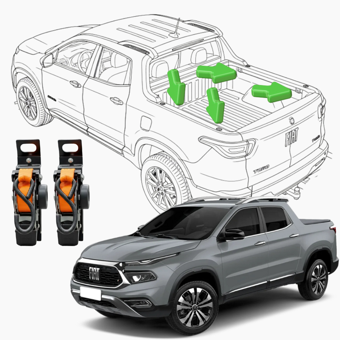 Perfeito para quem usa a caminhonete no dia a dia, no trabalho, nas viagens ou no campo, o sistema de recolhimento automático mantém as cintas sempre prontas para uso, fixas na carroceria, eliminando o barulho e a bagunça das catracas comuns.
